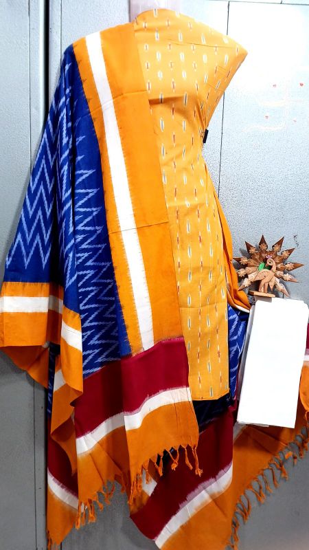 Double Ikkat Pochampally Handloom Unstitched Ethnic Dress Materials