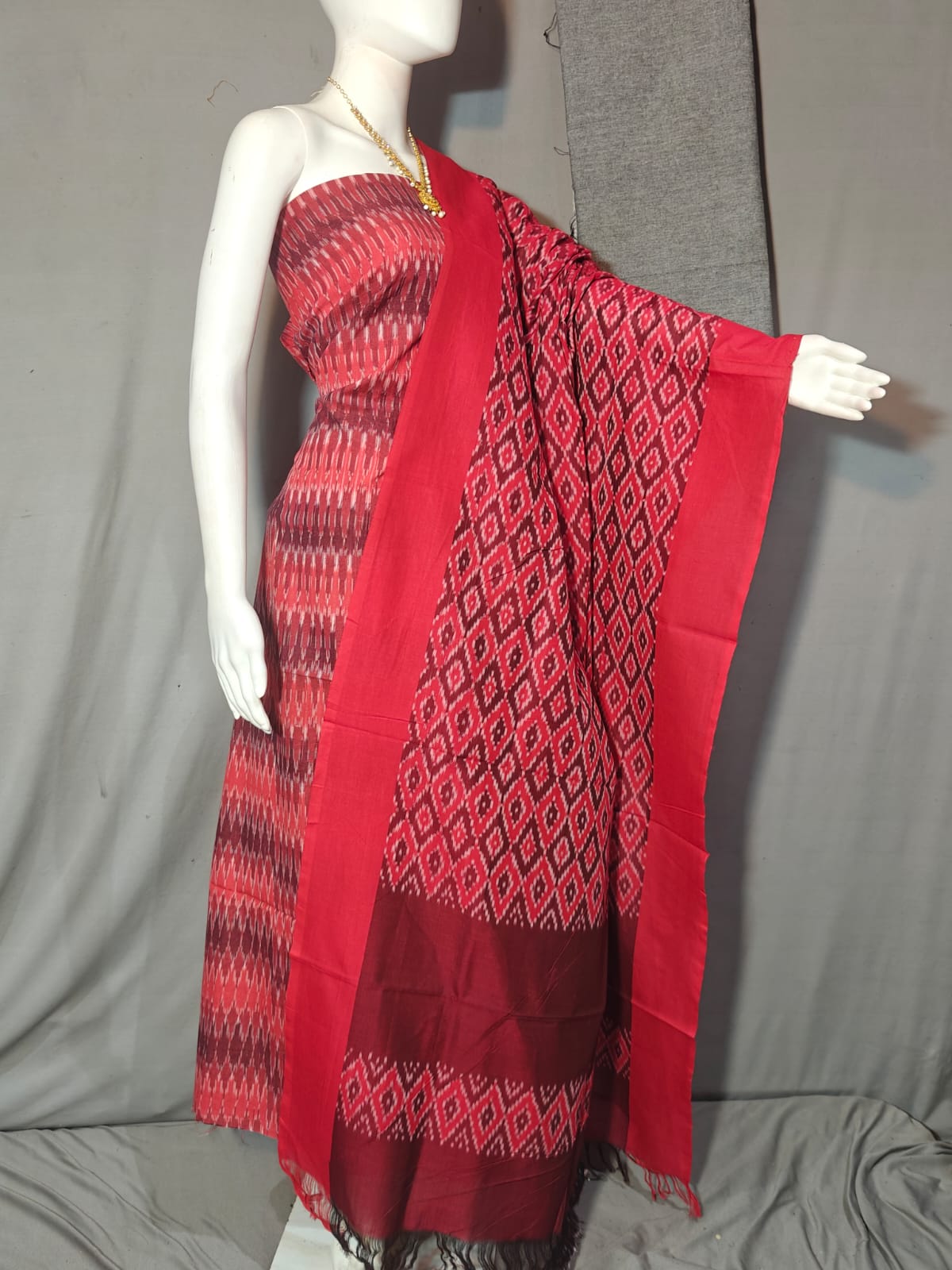 Double Ikkat Pochampally Handloom Unstitched Ethnic Dress Materials