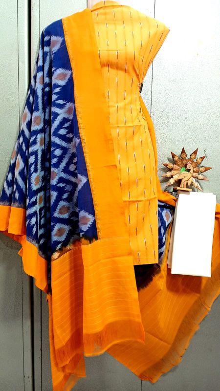 Double Ikkat Pochampally Handloom Unstitched Ethnic Dress Materials