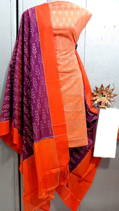 Double Ikkat Pochampally Handloom Unstitched Ethnic Dress Materials