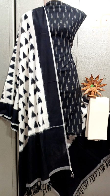 Double Ikkat Pochampally Handloom Unstitched Ethnic Dress Materials