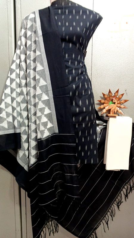Double Ikkat Pochampally Handloom Unstitched Ethnic Dress Materials