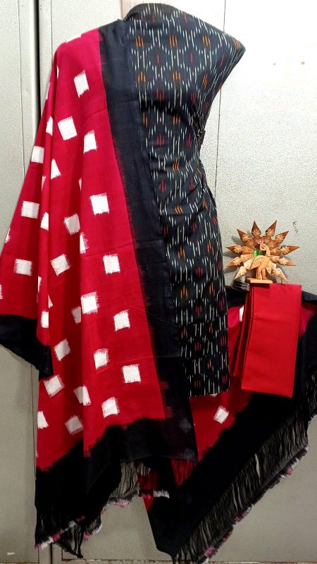 Double Ikkat Pochampally Handloom Unstitched Ethnic Dress Materials