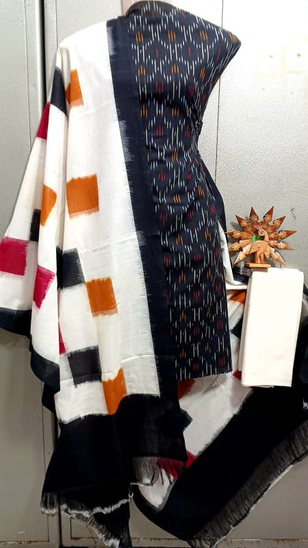 Double Ikkat Pochampally Handloom Unstitched Ethnic Dress Materials