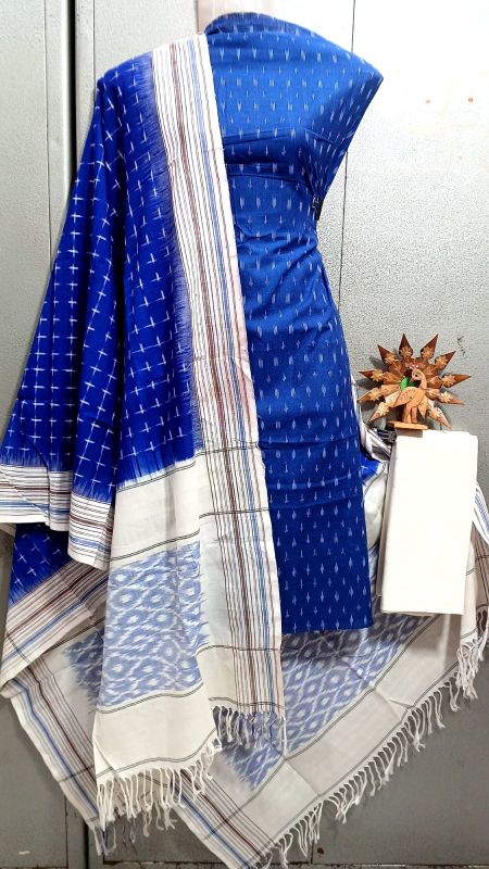 Double Ikkat Pochampally Handloom Unstitched Ethnic Dress Materials