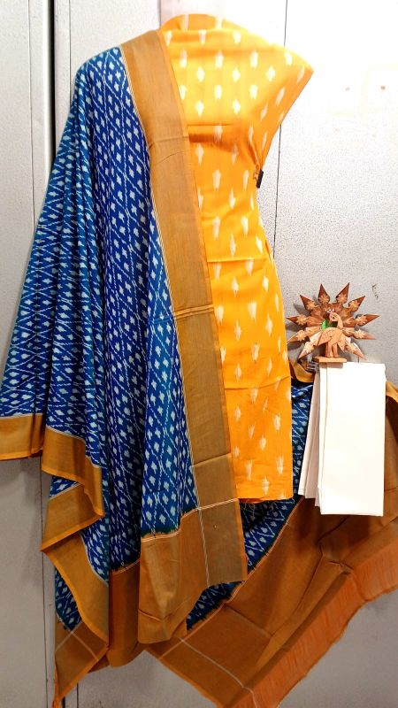 Double Ikkat Pochampally Handloom Unstitched Ethnic Dress Materials