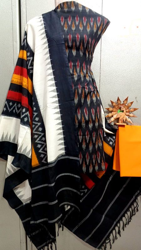 Double Ikkat Pochampally Handloom Unstitched Ethnic Dress Materials
