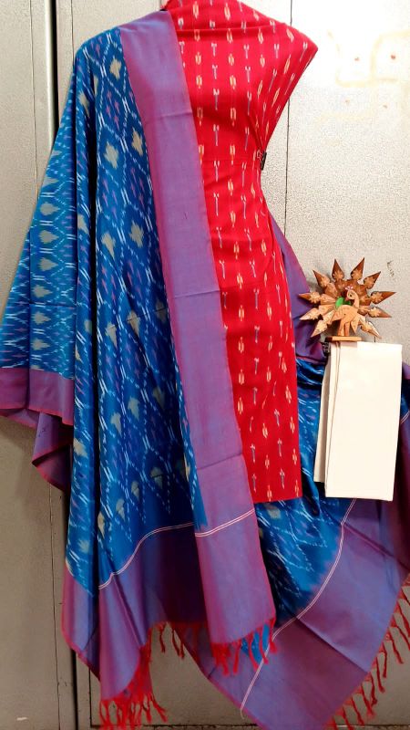 Double Ikkat Pochampally Handloom Unstitched Ethnic Dress Materials