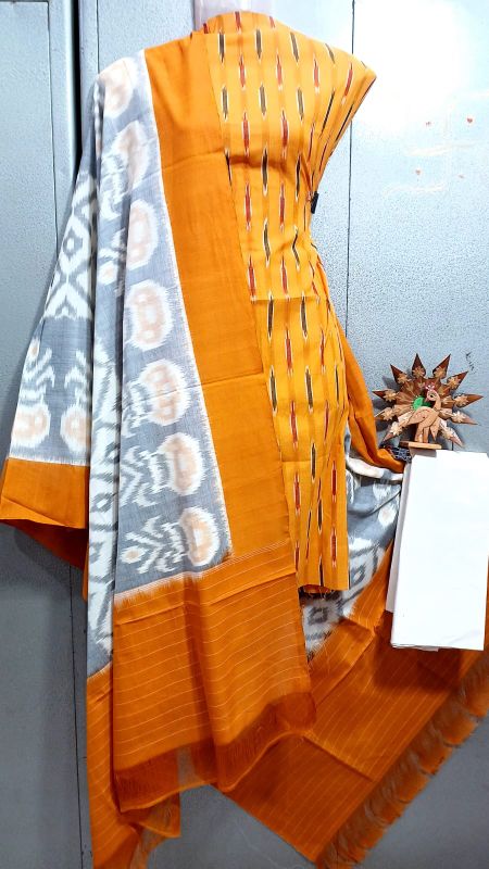 Double Ikkat Pochampally Handloom Unstitched Ethnic Dress Materials