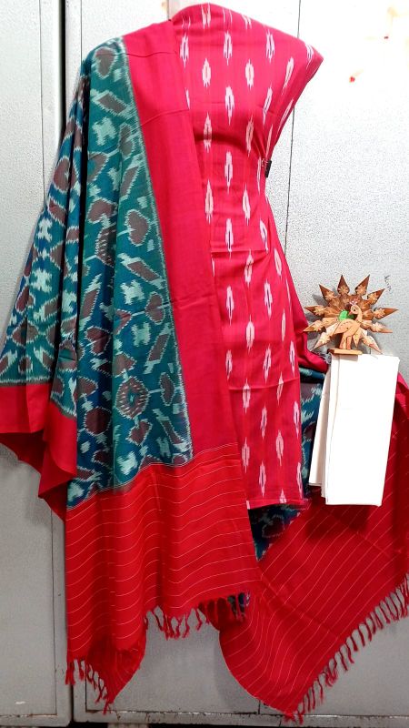 Double Ikkat Pochampally Handloom Unstitched Ethnic Dress Materials