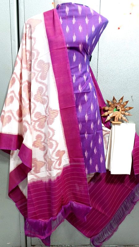 Double Ikkat Pochampally Handloom Unstitched Ethnic Dress Materials
