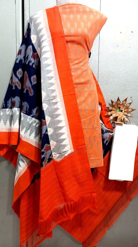 Double Ikkat Pochampally Handloom Unstitched Ethnic Dress Materials