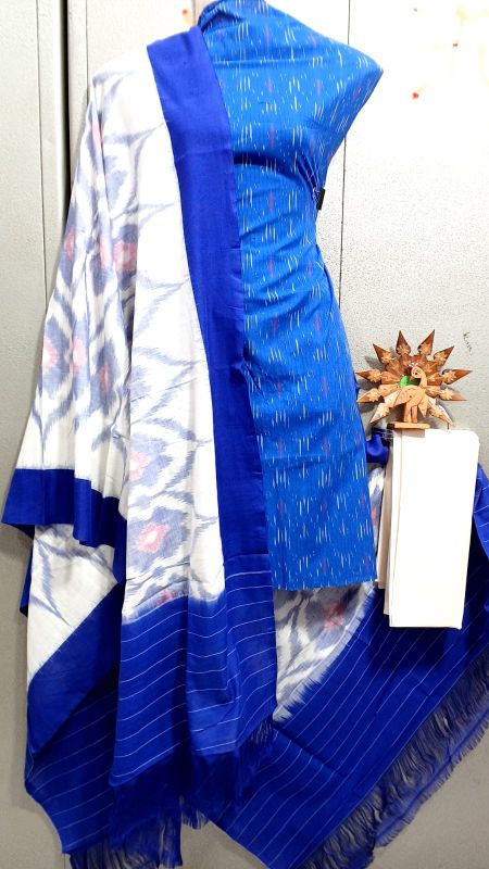 Double Ikkat Pochampally Handloom Unstitched Ethnic Dress Materials
