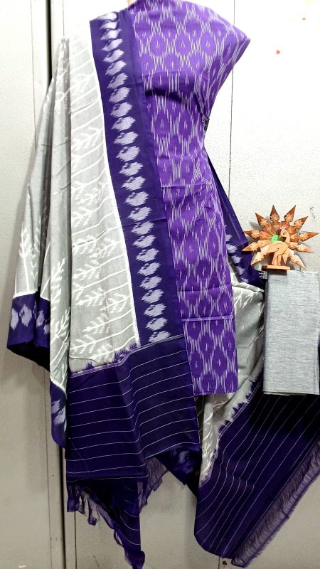Double Ikkat Pochampally Handloom Unstitched Ethnic Dress Materials