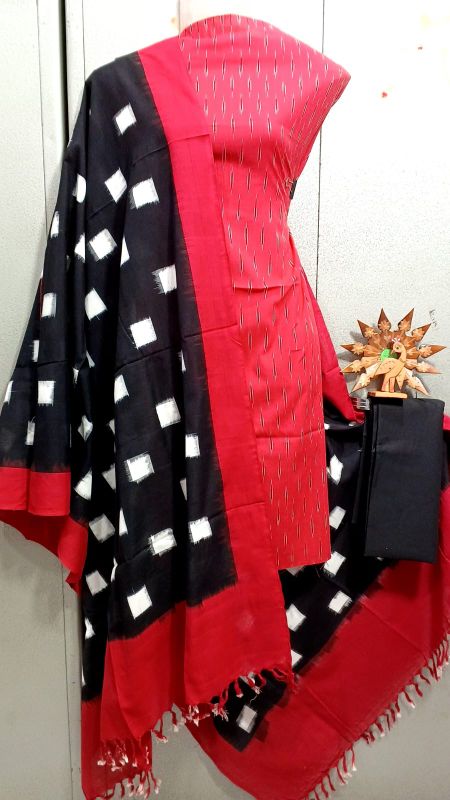 Double Ikkat Pochampally Handloom Unstitched Ethnic Dress Materials