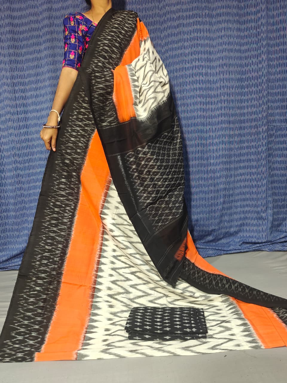 Double Ikkat Pochampally Mercerized cotton saree Light Weight With Blouse | Handloom Sarees