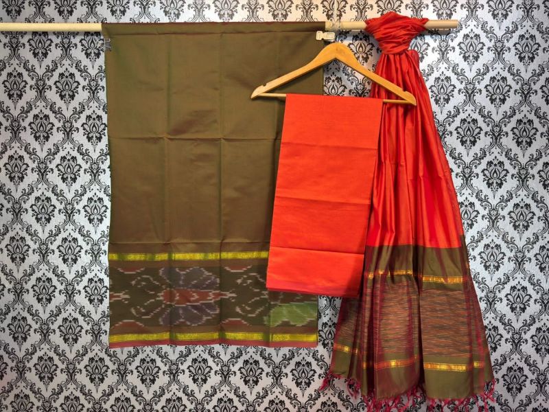 Ikkat Pochampally Handloom Women’s Silk Mix Unstitched Ethnic Dress Material