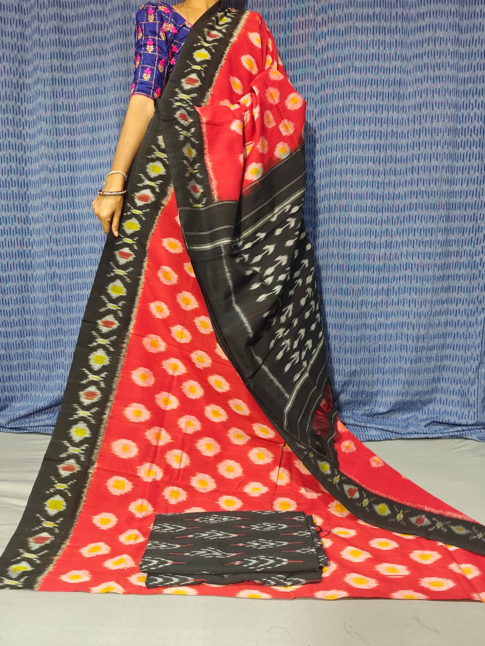 Double Ikkat Pochampally Mercerized cotton saree Light Weight With Blouse | Handloom Sarees