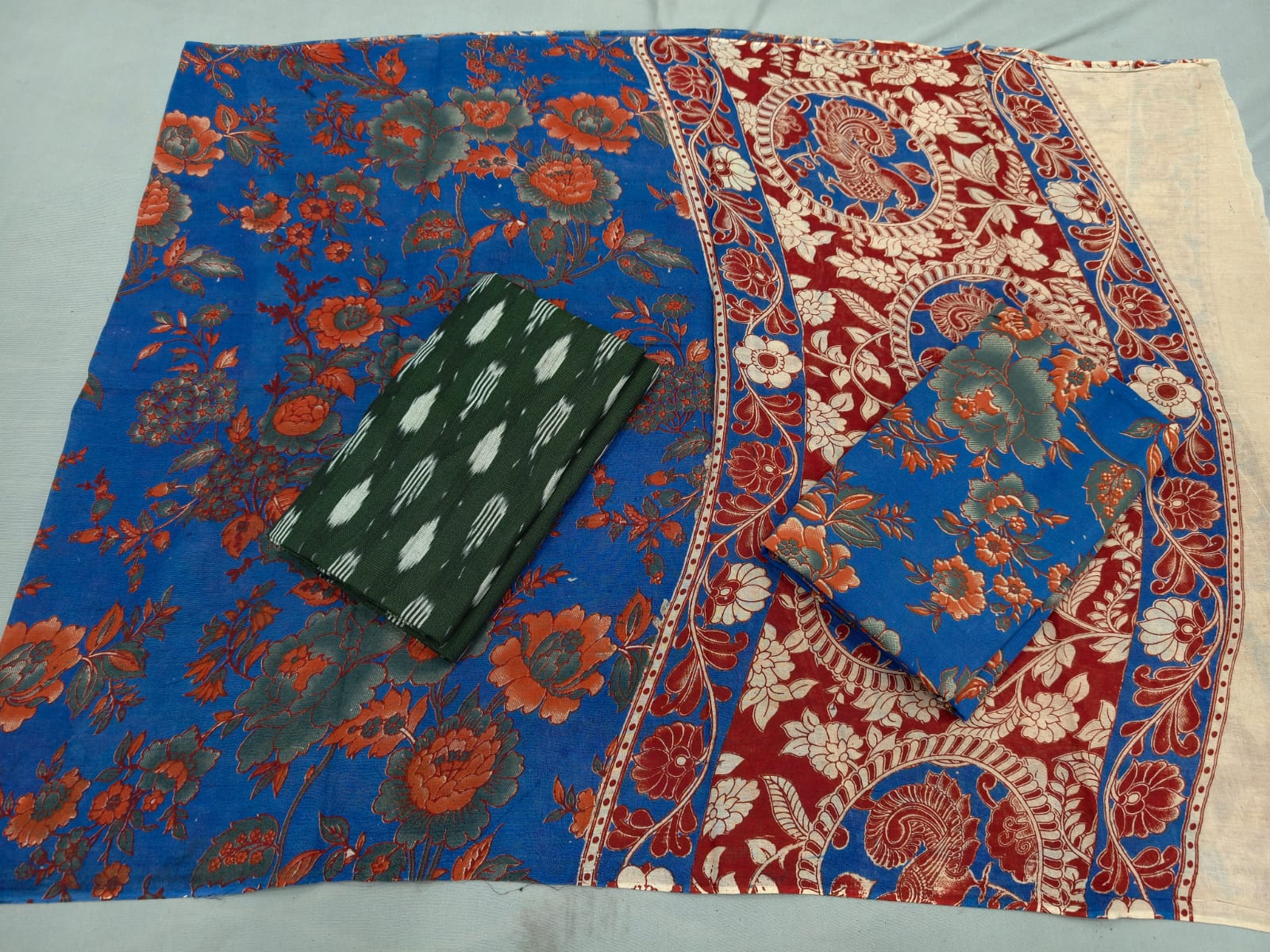 Kalamkari Cotton Dress material, Kalamkari dupatta, kalamkari suitsKalamkari Cotton Dress Material With Ikkat Top – AHK15057