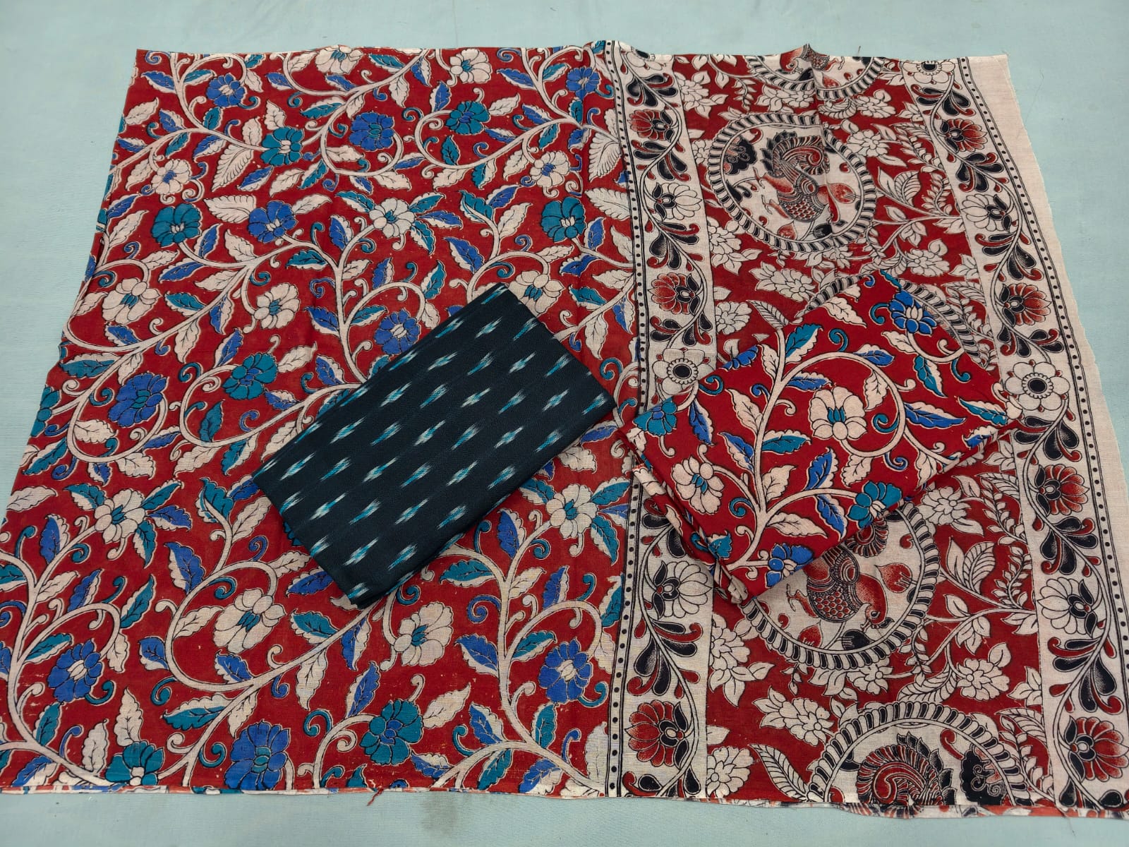 ๐ŸŒธ Kalamkari Cotton Dress Material with Ikkat Top ๐ŸŒธ