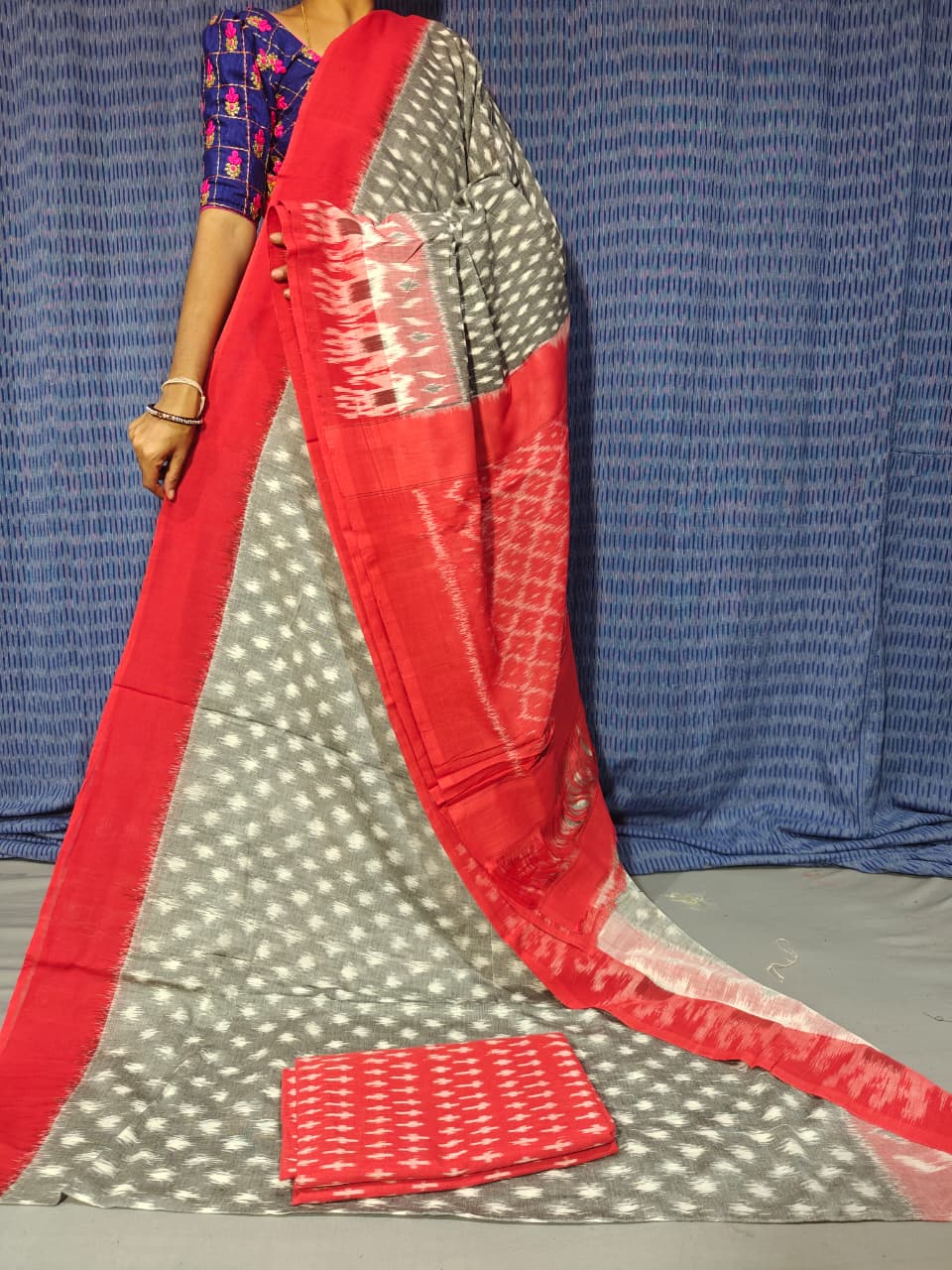 Length: 5.5 Meters + 1 Meter blouse Separate Ikkat cotton Blouse Piece