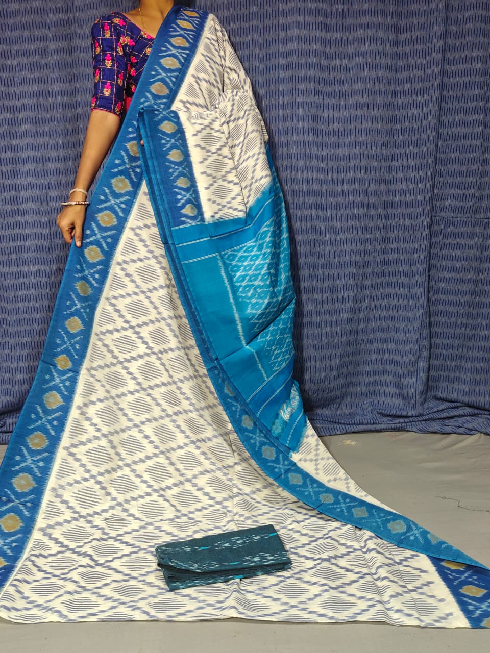 Length: 5.5 Meters + 1 Meter blouse Separate Ikkat cotton Blouse Piece