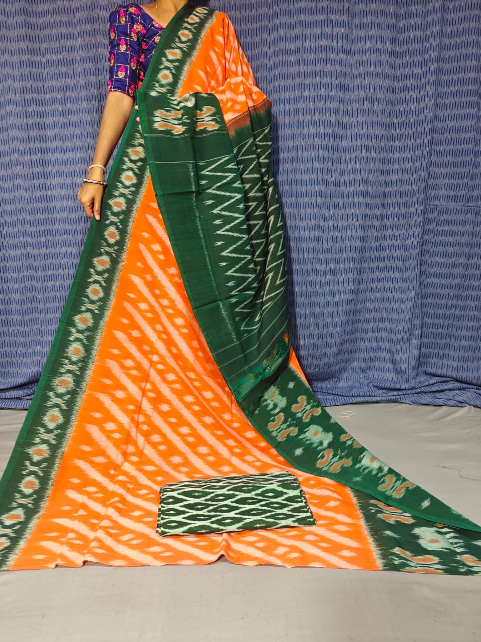 Length: 5.5 Meters + 1 Meter blouse Separate Ikkat cotton Blouse Piece