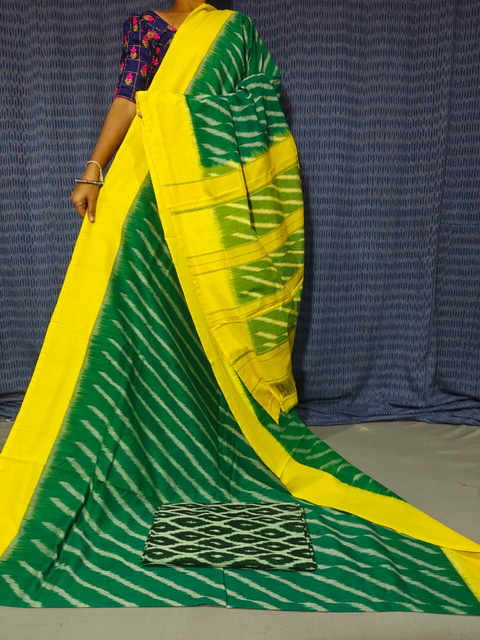 Explore the collection of beautifully designed Saree. The beautiful Ikkat Pochampally Mercerized cotton saree Light Weight With Blouse | Handloom Sarees colors combination of pochampally cotton saree