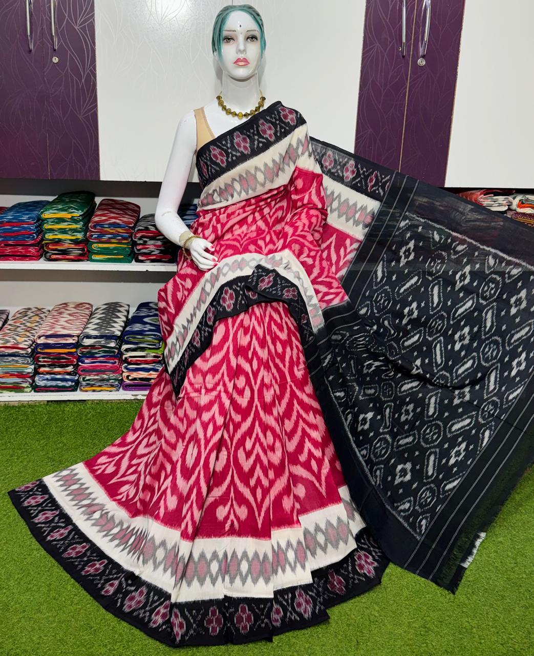 Double Ikkat Pochampally Mercerized cotton saree Light Weight With Blouse | Handloom Sarees