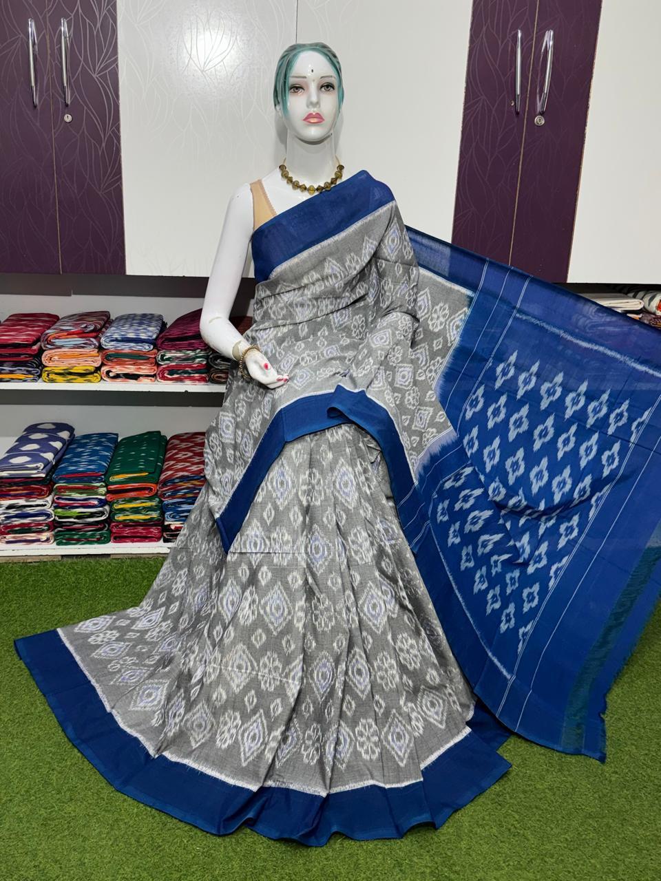 Double Ikkat Pochampally Mercerized cotton saree Light Weight With Blouse | Handloom Sarees
