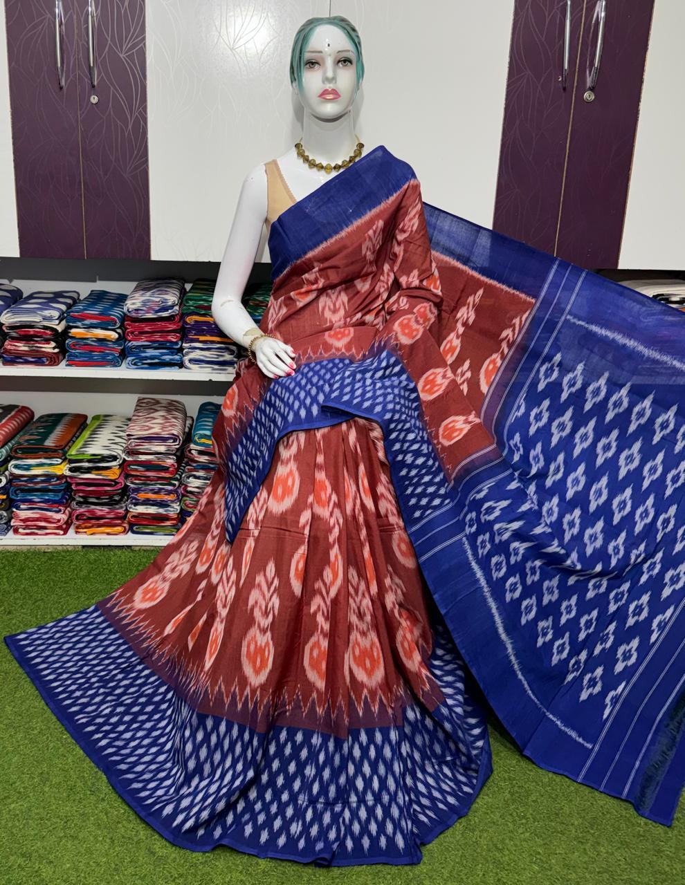 Double Ikkat Pochampally Mercerized cotton saree Light Weight With Blouse | Handloom Sarees