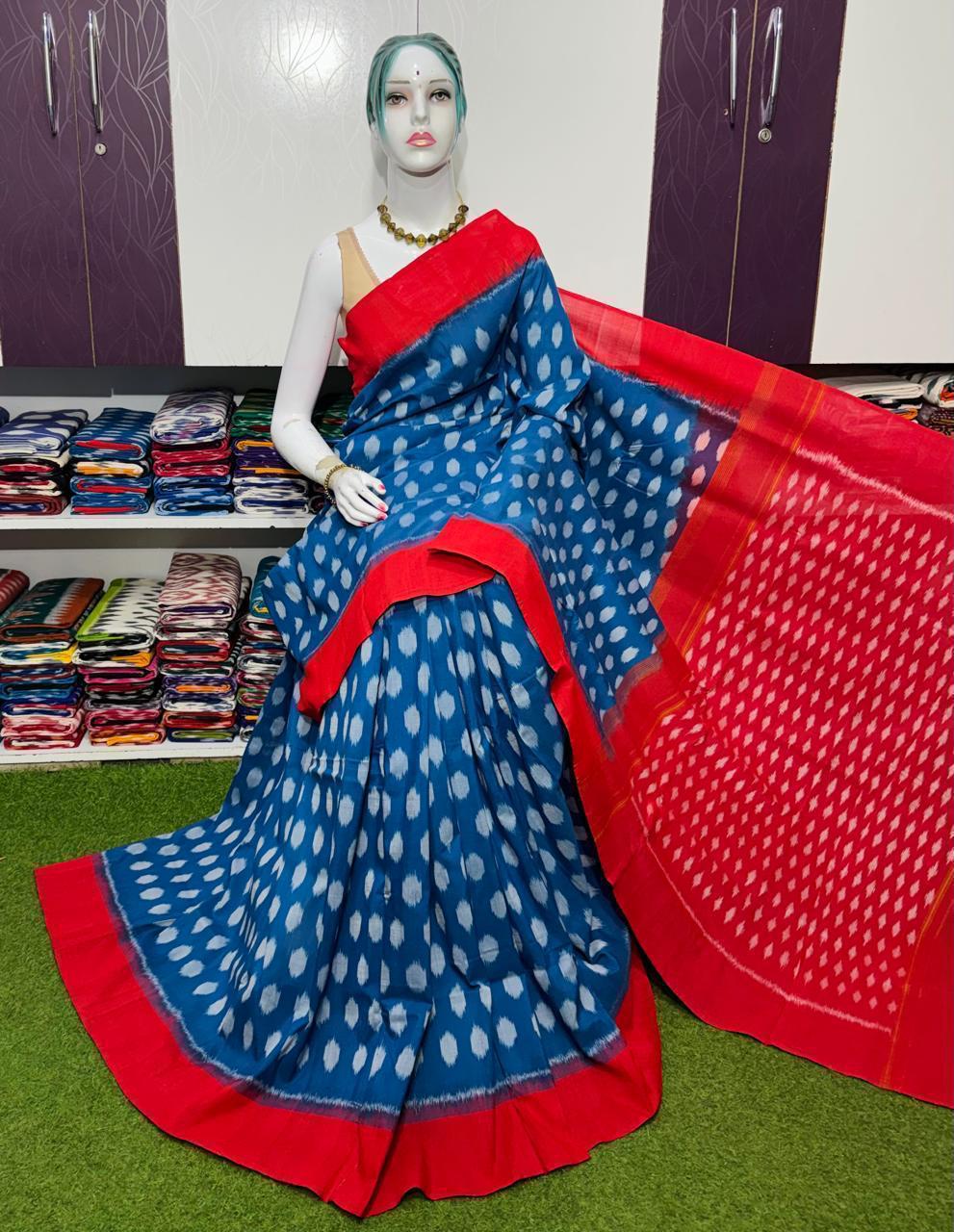 Double Ikkat Pochampally Mercerized cotton saree Light Weight With Blouse | Handloom Sarees