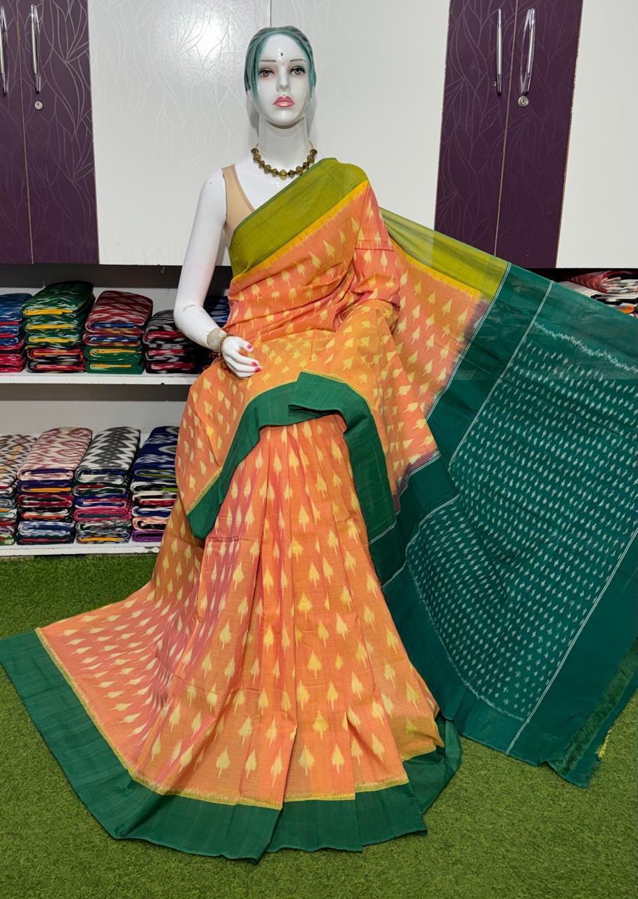 Explore the collection of beautifully designed Saree. The beautiful Ikkat Pochampally Mercerized cotton saree Light Weight Without Blouse | Handloom Sarees colors combination of pochampally cotton saree