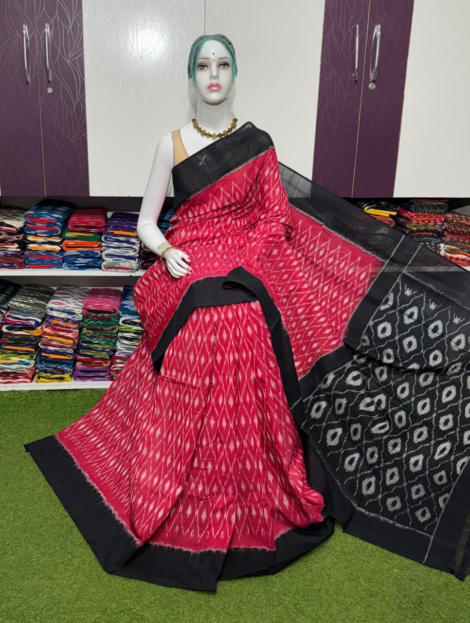 Double Ikkat Pochampally Mercerized cotton saree Light Weight With Blouse | Handloom Sarees