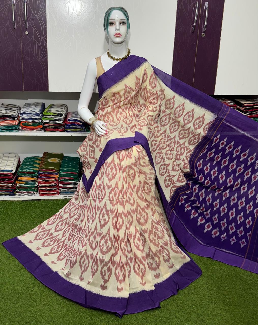 Explore the collection of beautifully designed Saree. The beautiful Ikkat Pochampally Mercerized cotton saree Light Weight Without Blouse | Handloom Sarees colors combination of pochampally cotton saree