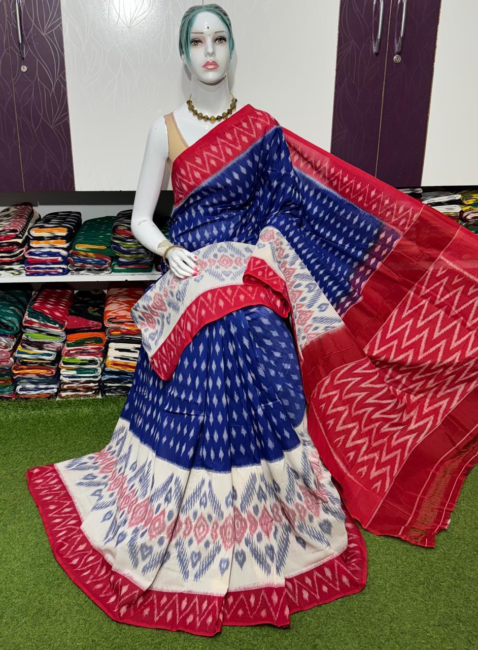 Double Ikkat Pochampally Mercerized cotton saree Light Weight With Blouse | Handloom Sarees