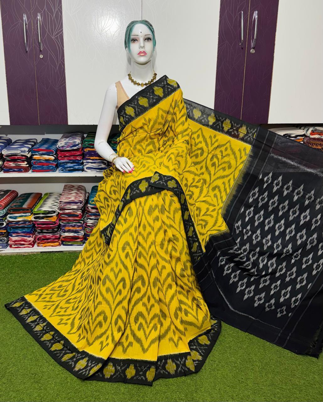 Double Ikkat Pochampally Mercerized cotton saree Light Weight With Blouse | Handloom Sarees