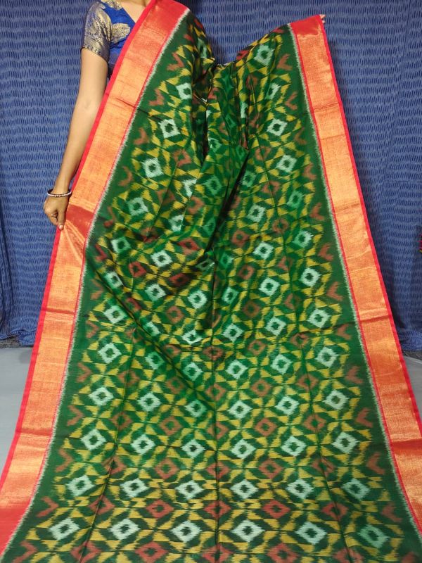 Explore the collection of beautifully designed Saree. The beautiful Ikkat Pochampally Sico silk sareeWith Blouse |colors combination of pochampally sarees