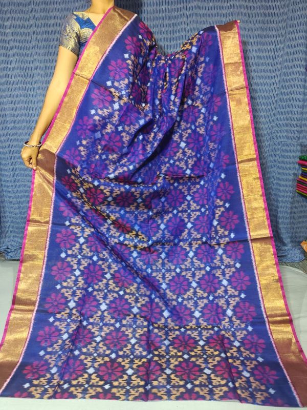 IkkatPure Ikkat Sico ( Silk Cotton ) Sarees, 4 Inch Border Handloom Saree With Blouse | Handloom Sarees