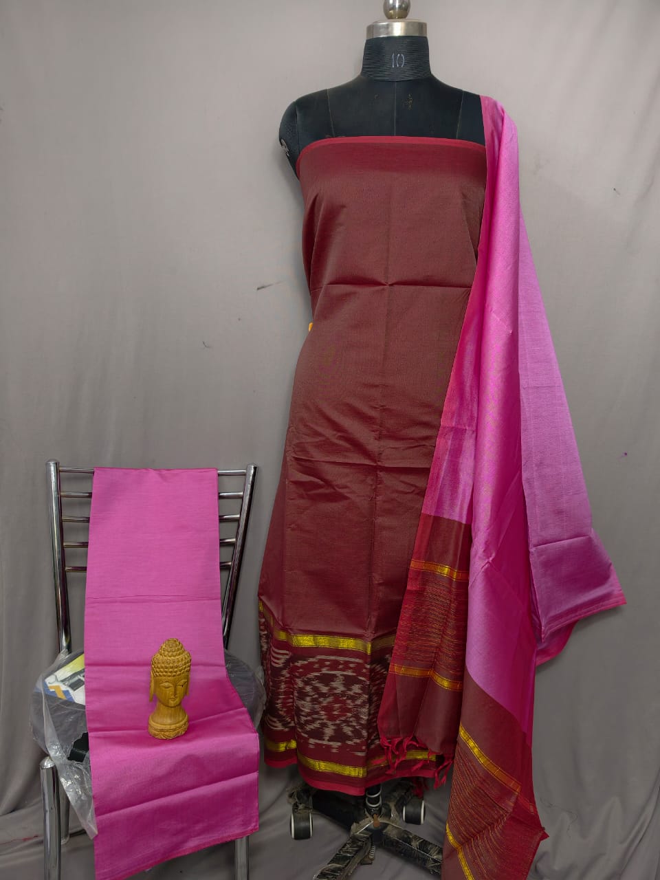 Ikkat Pochampally Handloom Women’s Cotton Silk Mix Unstitched Ethnic Dress Material