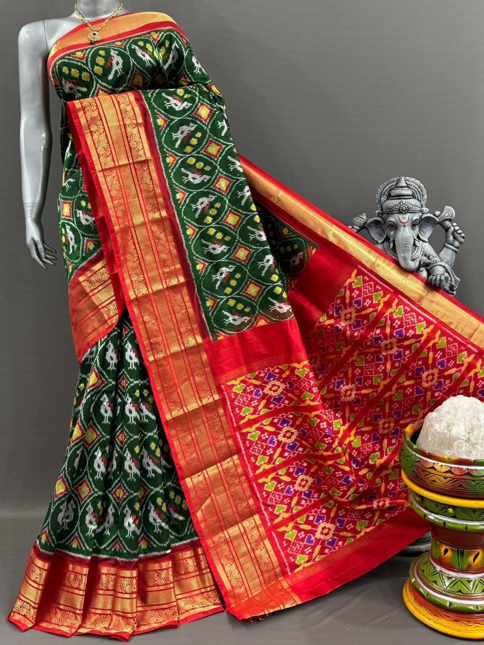 Pochampally Ikkat Silk Saree Gold Zari border With Blouse | Handloom Sarees