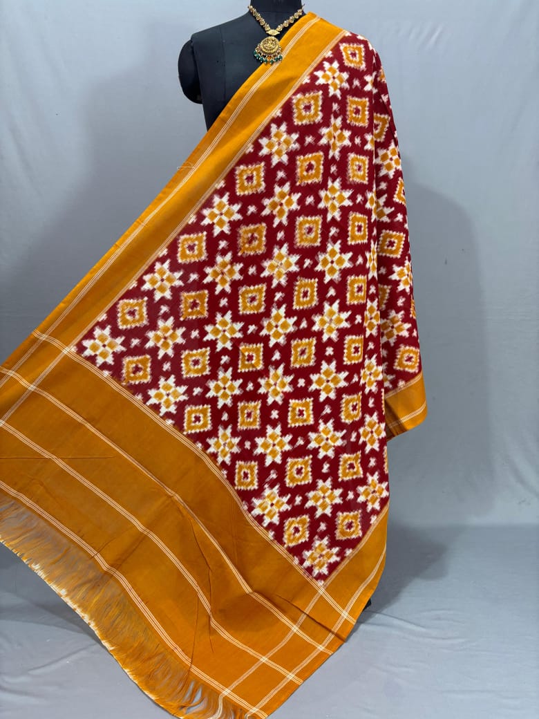 Pochampally Ikkat Telia Rumal Handloom cotton Dupattas | Length 2.5 Meters
