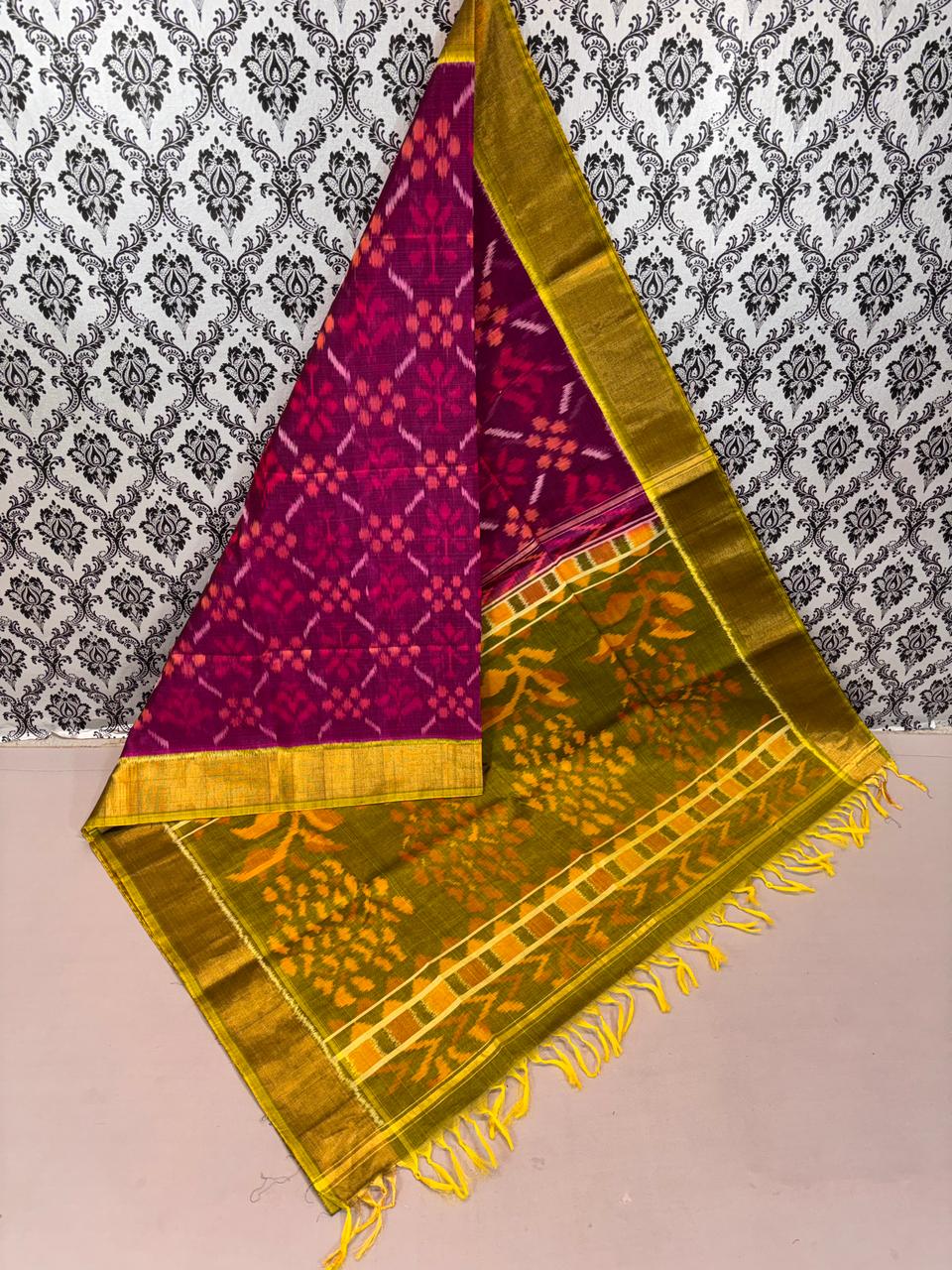 Ikkat Pure Ikkat Sico Silk Cotton Sarees, 4 Inch Border Handloom Saree With Blouse | Handloom Sarees