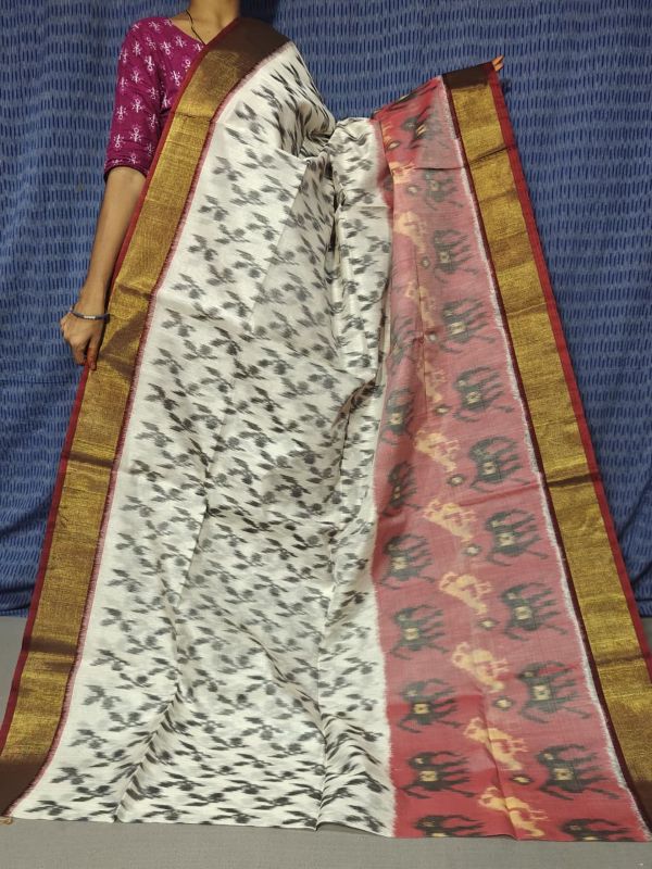 IkkatPure Ikkat Sico ( Silk Cotton ) Sarees, 4 Inch Border Handloom Saree With Blouse | Handloom Sarees