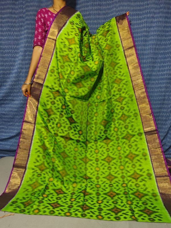 IkkatPure Ikkat Sico ( Silk Cotton ) Sarees, 4 Inch Border Handloom Saree With Blouse | Handloom Sarees