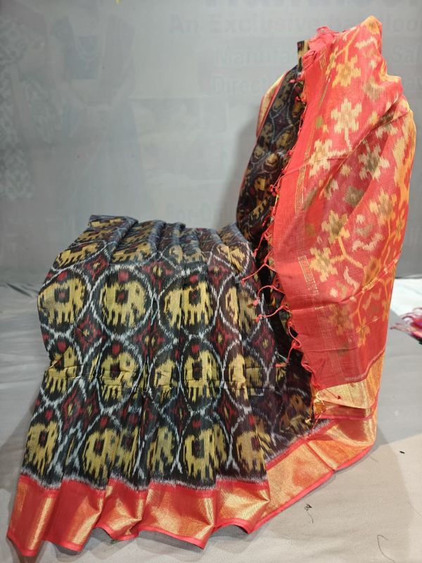 IkkatPure Ikkat Sico ( Silk Cotton ) Sarees, 4 Inch Border Handloom Saree With Blouse | Handloom Sarees