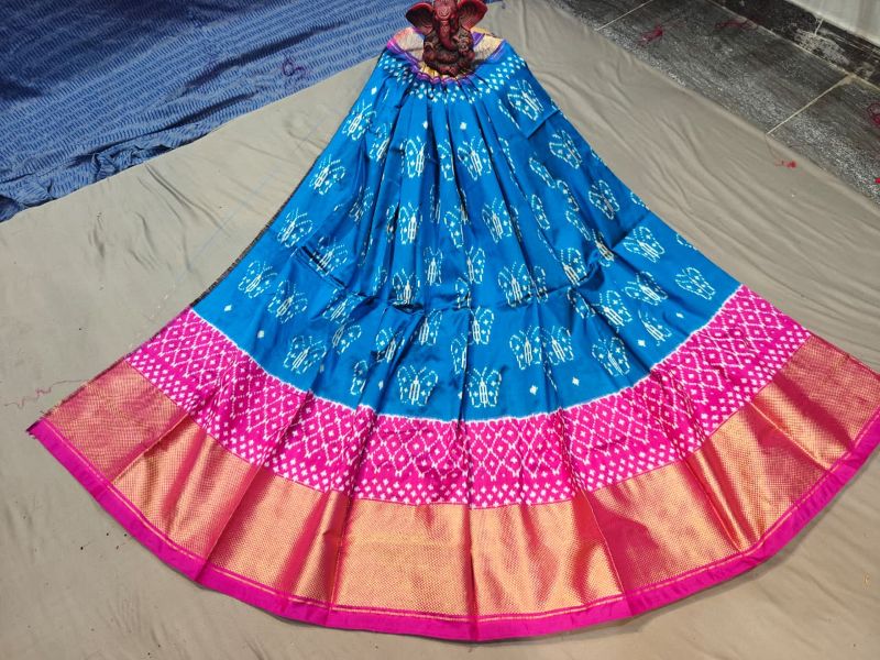 pochampally ikkat silk lehengas, Ikat Silk Lehengas / Pavadas, Ikkat Lehanga Material Free Size, Pochampally Ikkat Pure Silk Lehengas, silk lehengas online